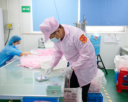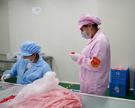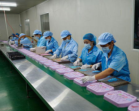 The quality department inspects each production line to ensure product quality throughout the production process.